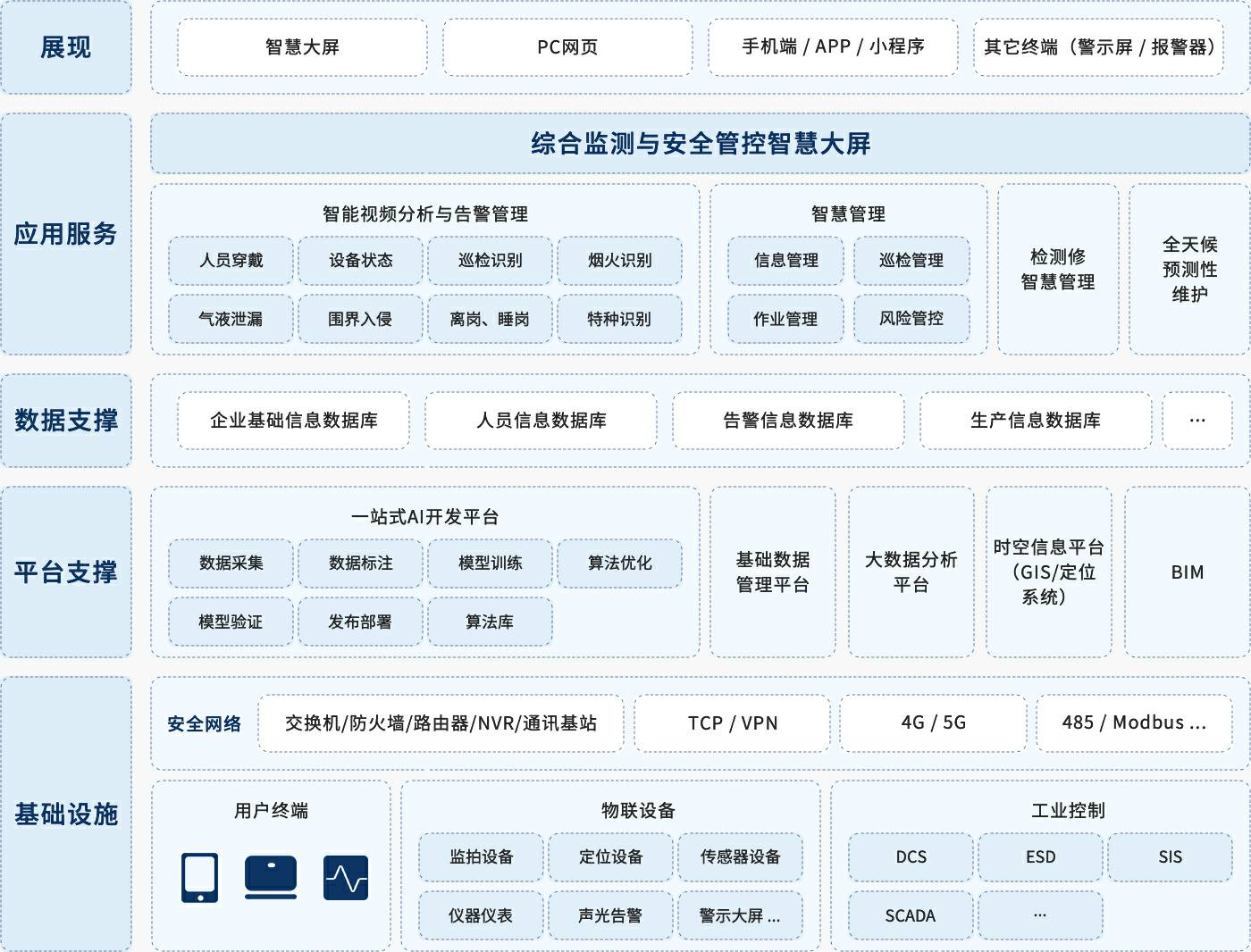 以“安全生产”为主线,实现数字化转型、智能化升级,强化安全生产基础和技术创新能力,构建“工业互联网+危化安全生产”技术体系和应用生态系统,提升安全生产风险感知评估、监测预警和响应处置能力,排查化解潜在风险,为促进企业和监管部门安全管理数字化转型赋能。